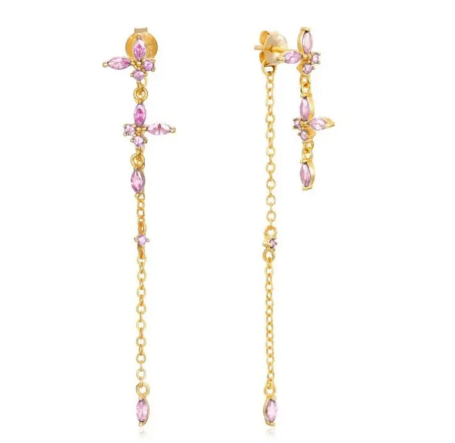 Butterfly Drop Oorbellen – Goud met paarse zirkonia