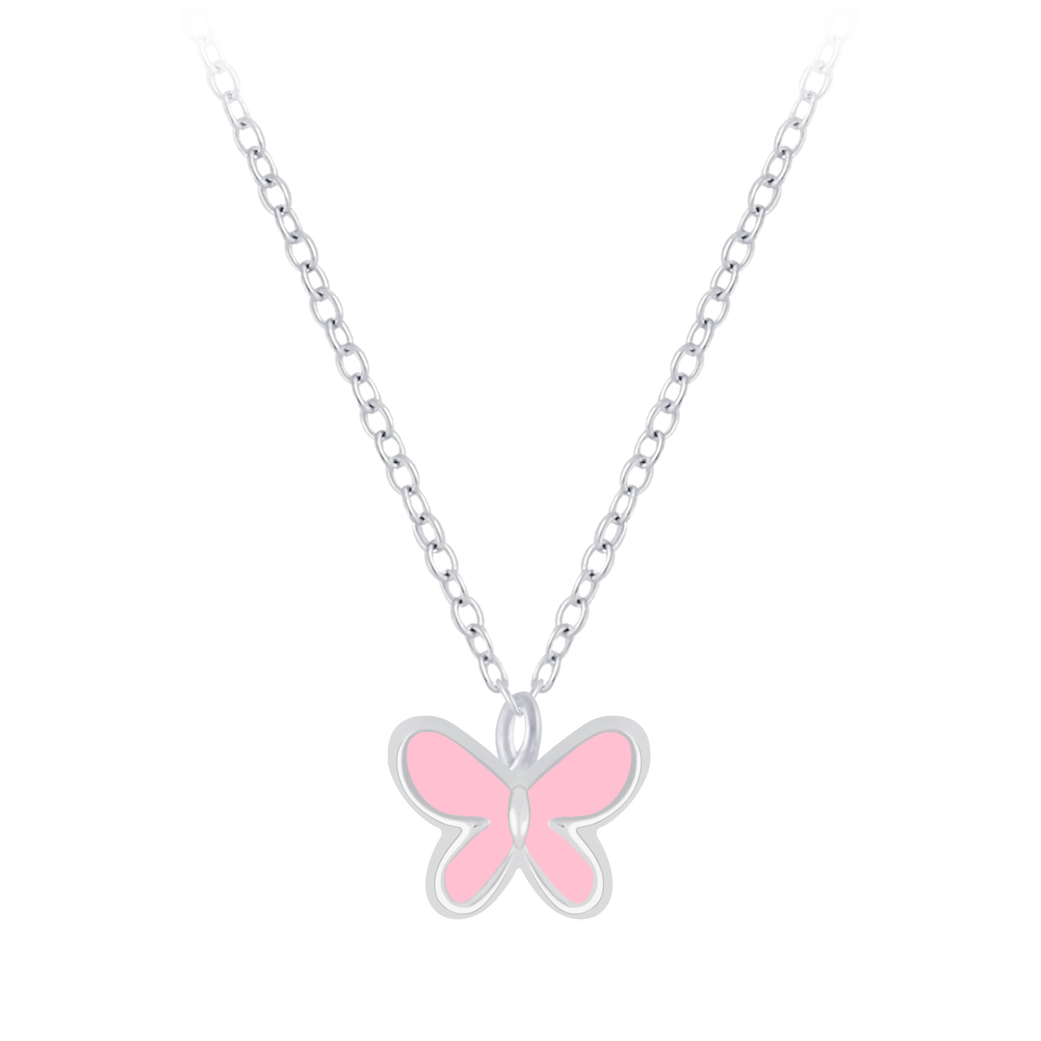 Prachtige ketting met subtiel hangertje met kleine roze vlinder, een simpel, maar heel mooi ontwerp.