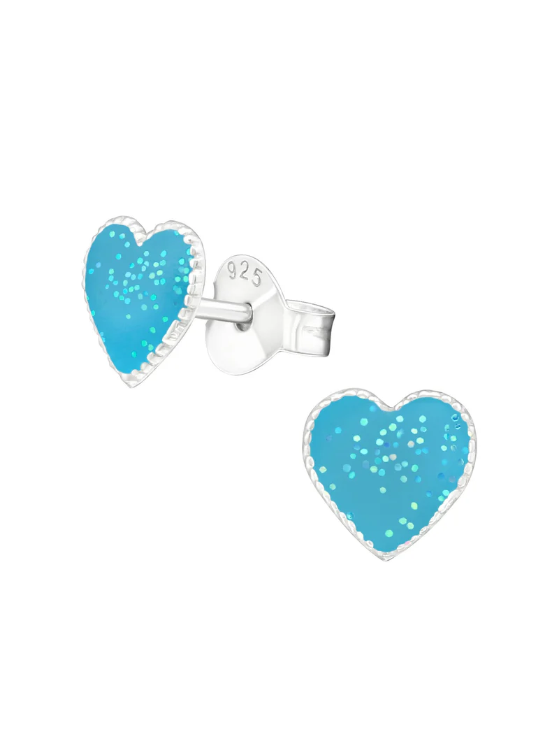 Mooie kinderoorbellen van 925 sterling zilver in de vorm van een hart. Oorstekers in licht glitter.