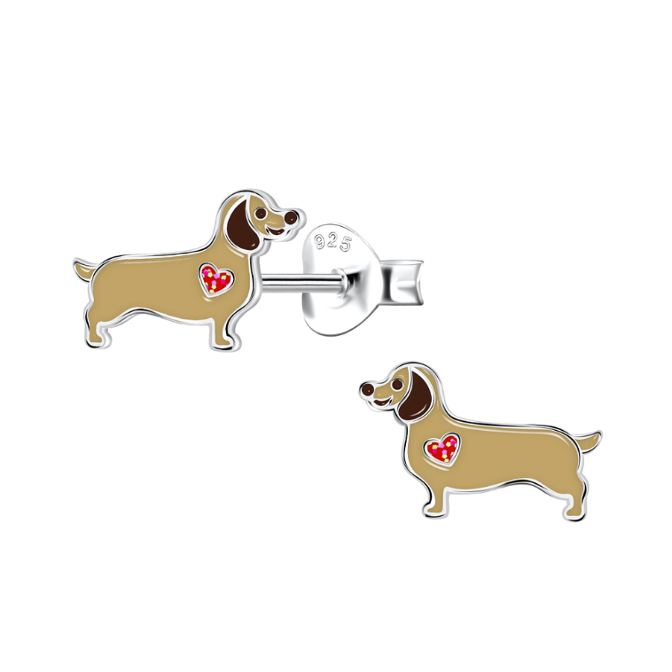 Zilveren teckel oorstekers – schattig en hondstrouw met een mini hartje!